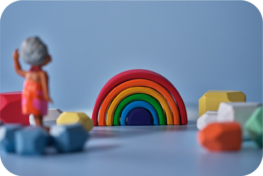 虹の上で遊ぶメネフネモンチッチくんたちが